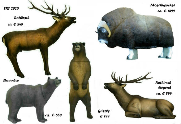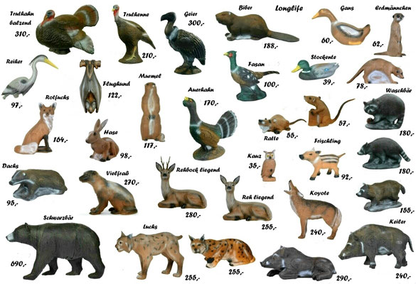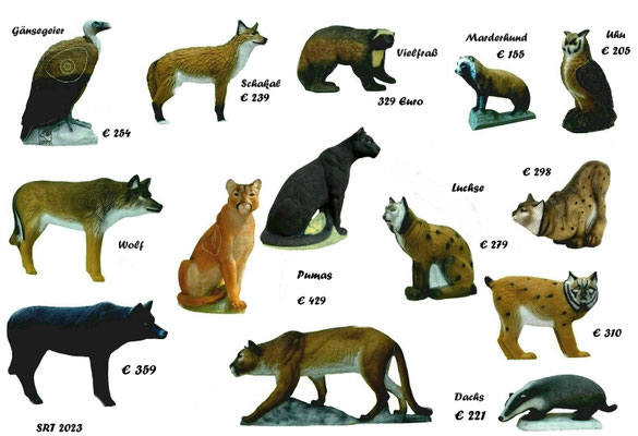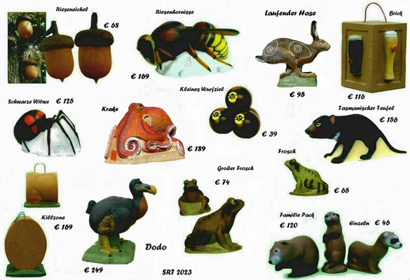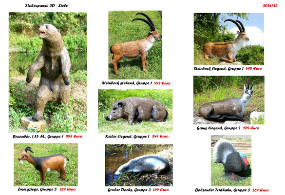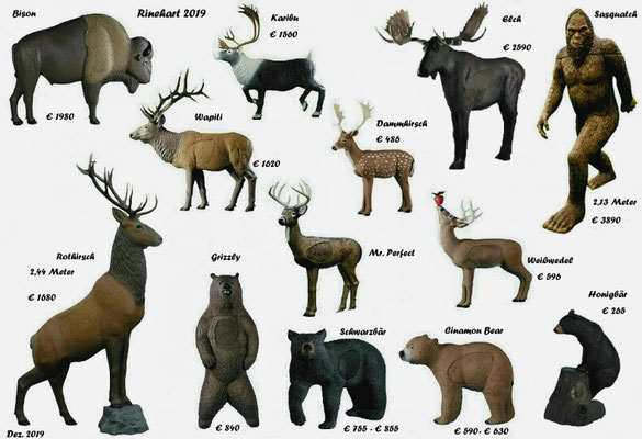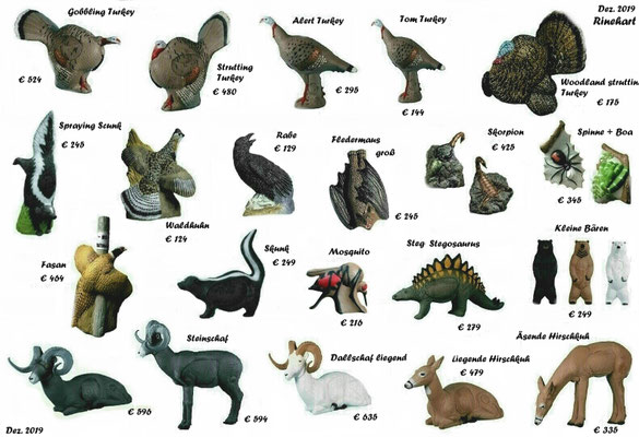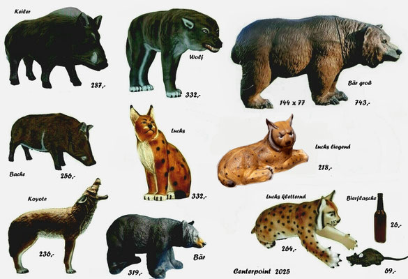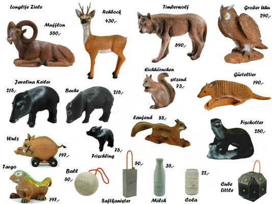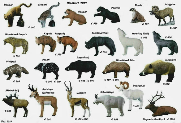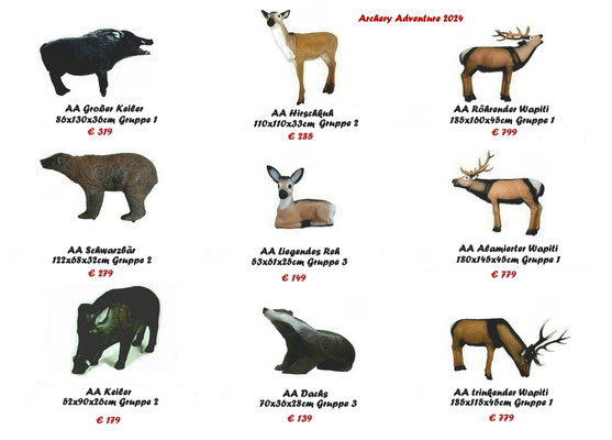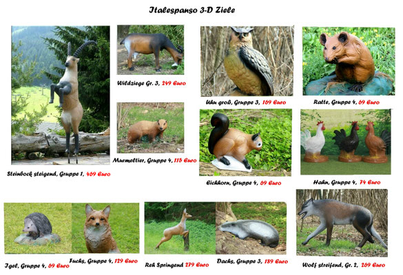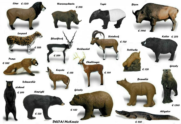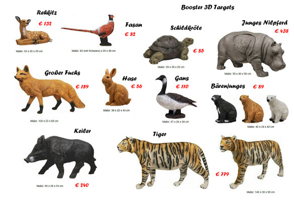 Die Vergleichstafel der Keiler zeigt die 3- D Ziele im Größenvergleich zueinander.