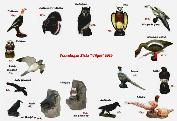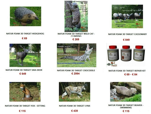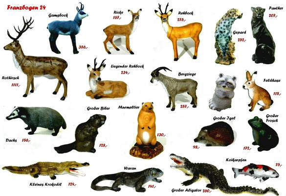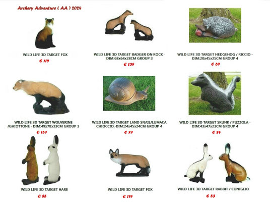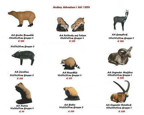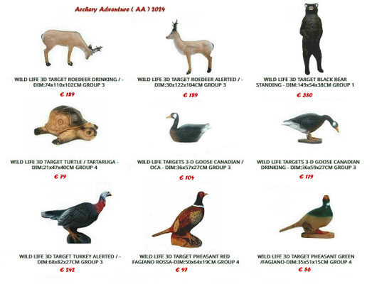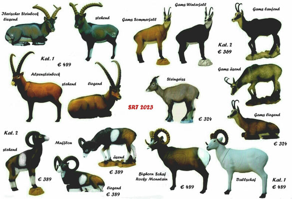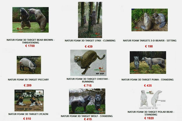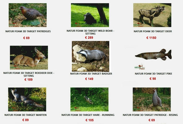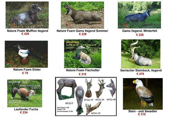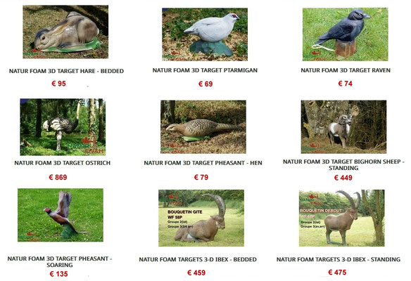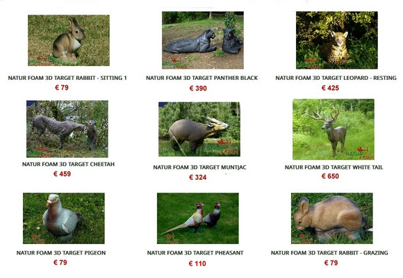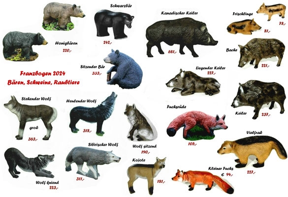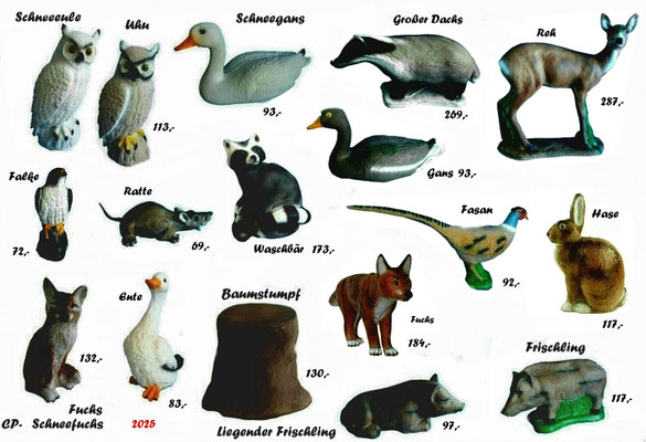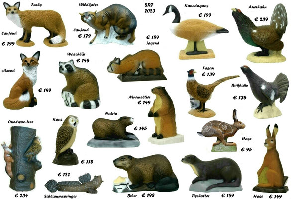 Die Vergleichstafel der Keiler zeigt die 3- D Ziele im Größenvergleich zueinander.