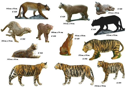 Abgebildet sind verschiedene Pumas, Geparden, Tiger und Leopard.